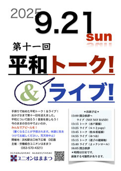 第11回平和トーク!&ライブ!を9月21日(日)に開催します。